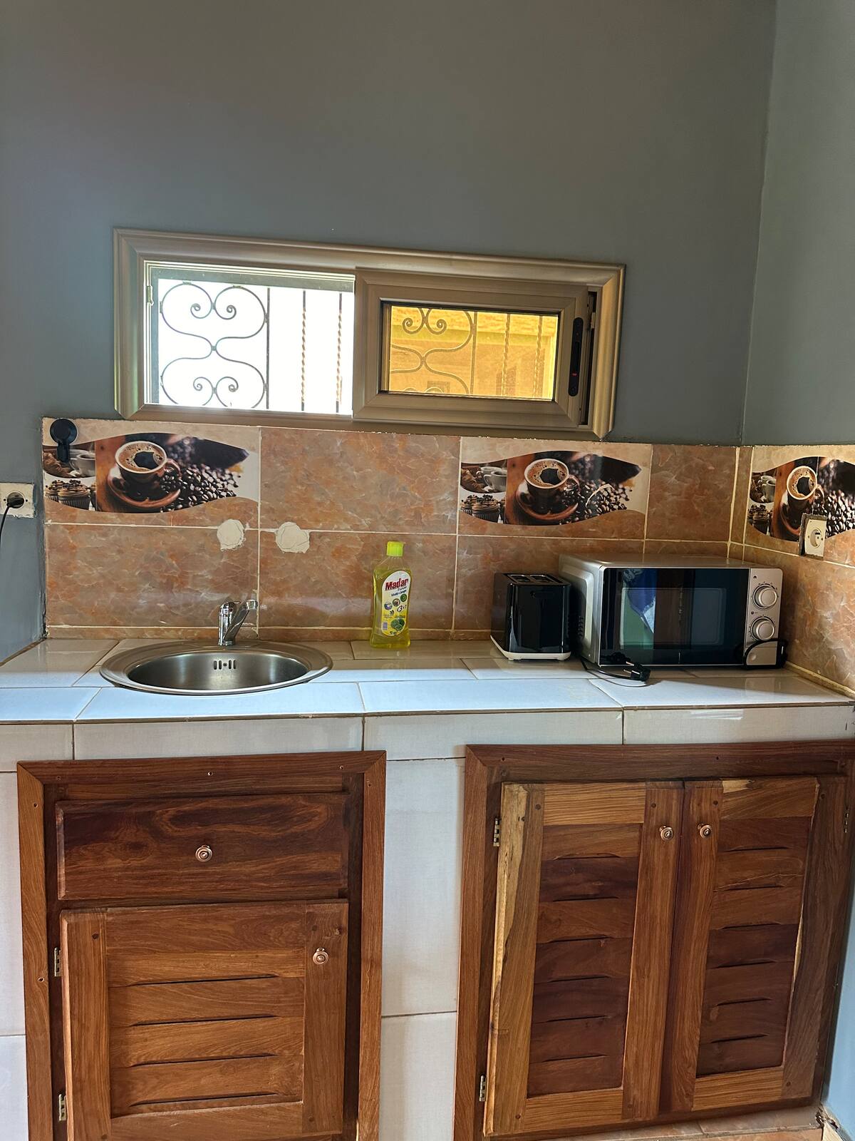 Bienvenue dans le Studio Sankara, un bâtiment indépendant offrant 36 m² de confort moderne, à seulement 1 minute à pied de la plage. Pensé pour votre bien-être, ce studio lumineux dispose d’un lit king size ultra-moelleux, de la climatisation, d’une terrasse privée, d’un baby-foot, du Wi-Fi haut débit et d’une TV avec CanalSat. Sa kitchenette entièrement équipée vous permet de cuisiner facilement. Vous bénéficiez également d’un accès à la piscine, au parking gratuit, et du ménage régulier. Situé dans un quartier calme, proche des commerces et restaurants, c’est le choix idéal pour un séjour détente ou professionnel à Mbour.